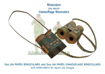 2no. AA PAIRS Binoculars and 2no. AA PAIRS CAMOUFLAGE BINOCULARS to make.
