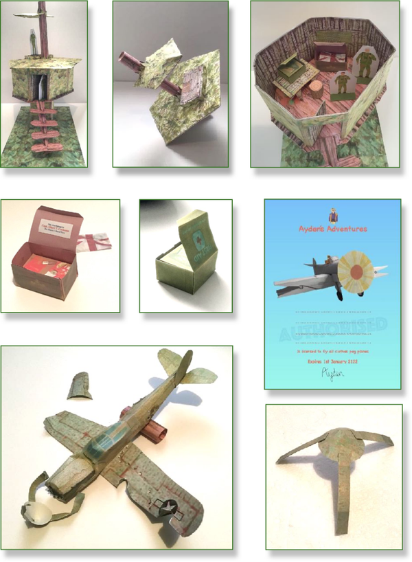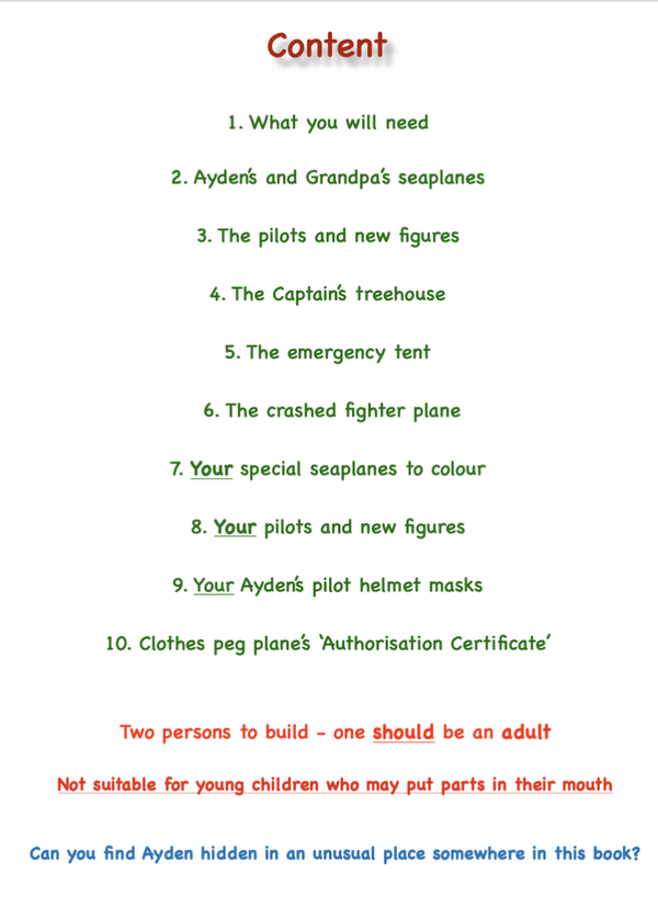 The second SUPER SIZED colour cutout book, to make clothes peg seaplanes, figures, emergency tent and new things the explorers find on the island. Coloured just like Ayden’s and have his adventures with grandpa.