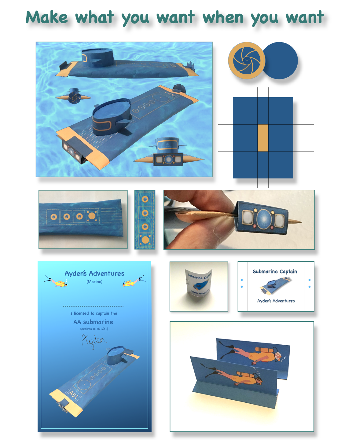 Have fun making Ayden Grandpa and your own submarines with your captain initial plus your captain's armband plus Ayden, Grandpa, and your scuba diving figures, with plenty spares for repairs!